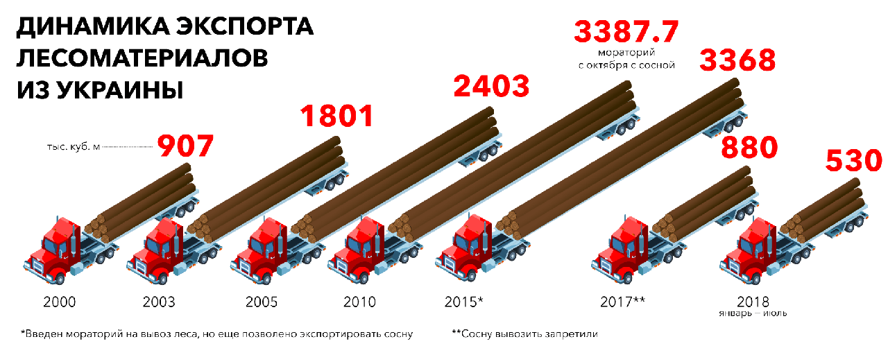 До 2017 года в Украине был запрещен экспорт необработанных лесоматериалов, за исключением сосны. С 2017 года действует полный запрет. Единственное исключение – обычные дрова. Чтобы избежать злоупотреблениий, Гослесагентство ограничило их длину двумя метрами.