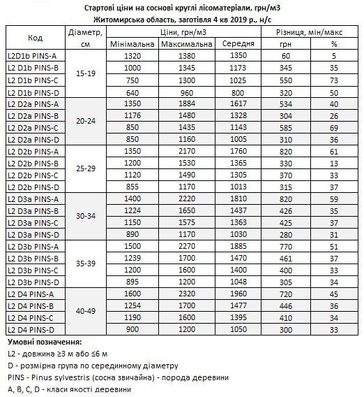 Скриншот аукционного бюллетеня. Индекс R вместо D. Круглые лесоматериалы длиной 3,0 – 4,0 м и круглые лесоматерилы длиной 1,0 – 2,0 м предлагаются по одной цене от 1500 до 2000 грн/м3. Во всем мире они имеют разные цены.