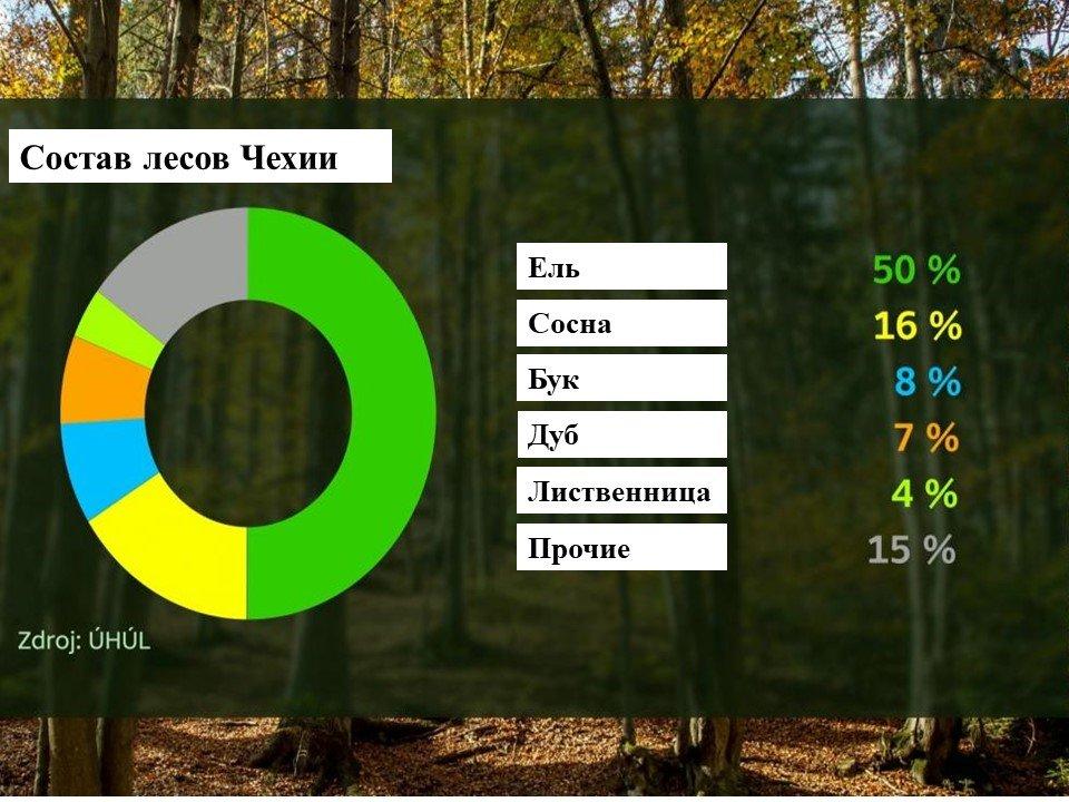 Площадь лесов, которая была опустошена в этом году от засухи и короеда, оценивается в 66 тысяч гектаров, стоимость облесения составит около 7,3 миллиарда крон. «В настоящее время в непосредственной опасности находится около 450 миллионов кубических метров еловой древесины, то есть половина древостоев в Чешской Республике», – говорится в исследовании.