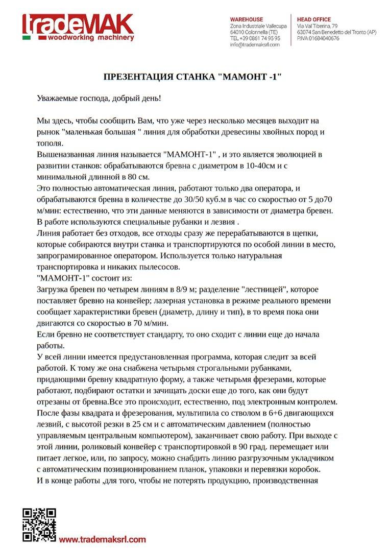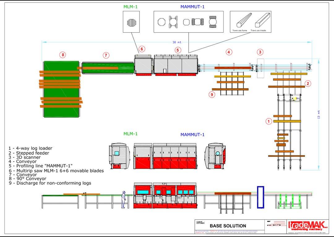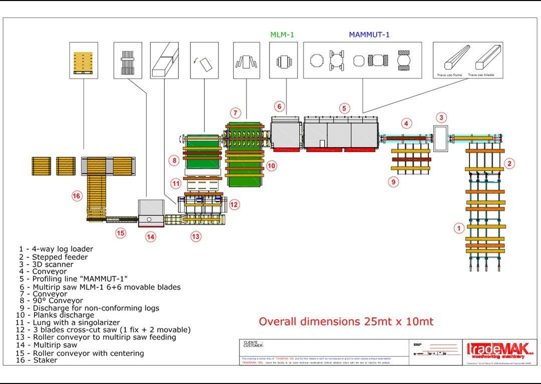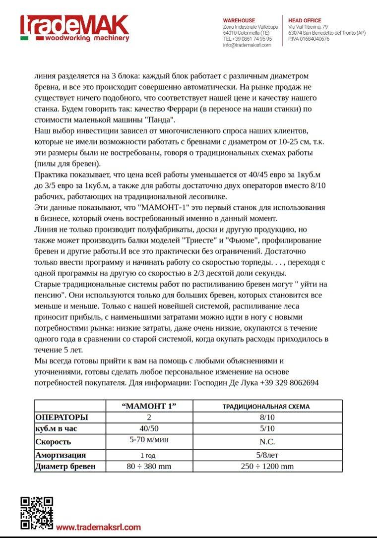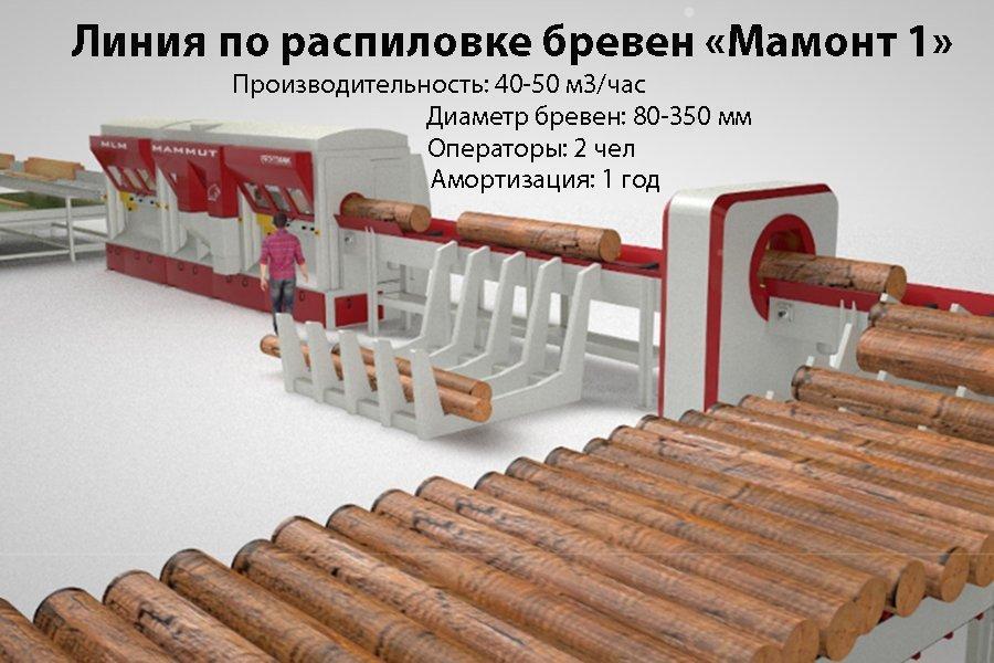 Итальянская компания TradeMak предлагает интересную малую большую линию по распиловке бревен хвойных и лиственных пород MAMMUT-350, разработанной на основе современных технологий лесопиления.