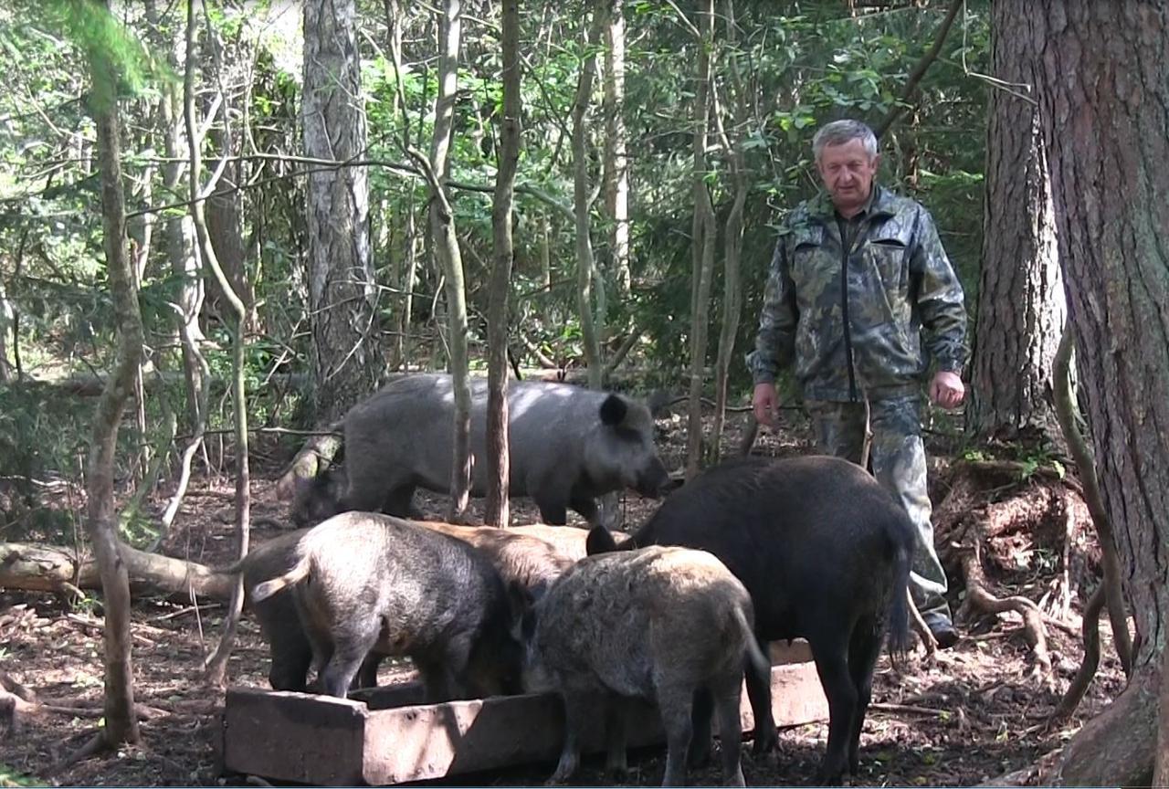 Між іншим, усю охорону вольєру здійснює Михайло Петрович самостійно. Живе поруч, недалечко. Сів, каже, на скутер, і під’їхав коли схотів. Провідав свиней. А свого господаря вони добре знають. Знають також, що з порожніми руками до них Петрович не приїде, тільки з гостинцями. «Хрюськи, хрюськи!..» — прицмакуючи, кличе своїх підопічних старший єгер. І справді, смагляві кабанці галопом помчали до нього …