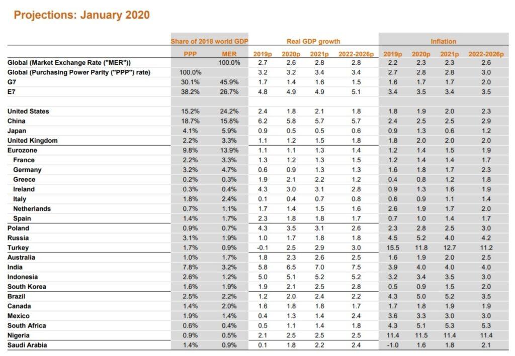 PwC (одна из крупнейших в мире консалтинговых и аудиторских групп компаний) прогнозирует в 2020 году глобальное замедление роста мировой экономики, и даже предложила для этого явления специальное название – slowbalisation (от slow – медленный и globalisation – глобализация). Согласно прогнозу, мировая экономика в 2020 году будет расти, но медленнее, чем в предыдущие годы (на 3,5% по паритету покупательной способности в 2020 году, при среднем значении этого показателя с начала XXI века 3,8%). Прогноз опубликован на сайте компании: