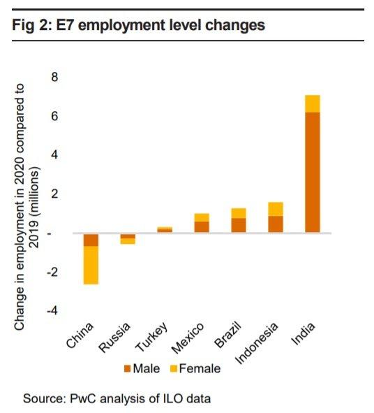 Отдельных данных по России в прогнозе почти нет (кроме тех, что приводятся в сводной таблице). Говорится лишь, в двух крупных странах (России и Китае) ожидается существенное снижение количества работающих – объясняется это главным образом демографическими проблемами: