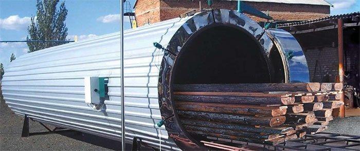 Для термомодификации подходит древесина как хвойных, так и лиственных пород, предварительно высушенная до влажности 10 %. Объем камер может быть разным — от 6 до 100 кубометров за один цикл.