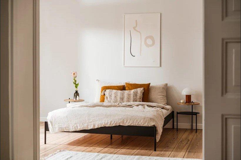 «Eton bed basic» цвета vulcano black и два прикроватных столика из дуба на колесиках (все изображения с сайта noo.ma)