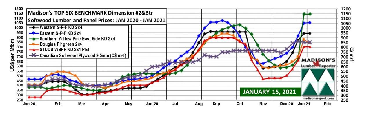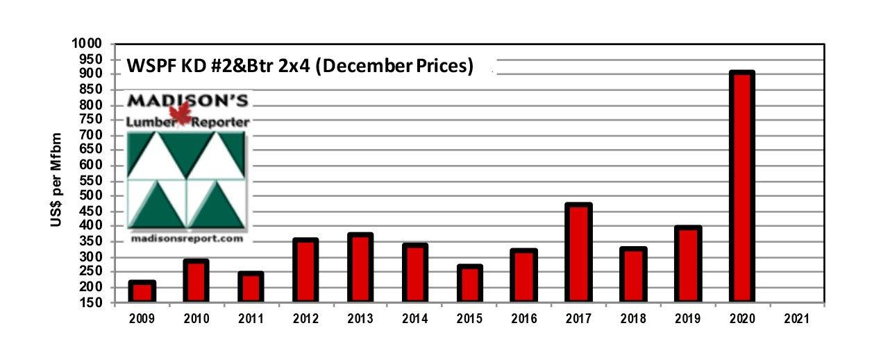 По мере того, как 2020 год шел на спад, и лесопильные заводы по всей Канаде и в некоторых частях США были вынуждены сократить ежегодные остановки и сезонные перерывы, для продавцов и реселлеров пиломатериалов практически не было остановки. Это был беспрецедентный рост продаж домов и строительных материалов в ноябре и декабре. Это привело к тому, что у нескольких операторов не хватило древесины для завершения текущих проектов. Заказы на пиломатериалы лесопильным заводам и оптовикам продолжались и в праздничные недели.