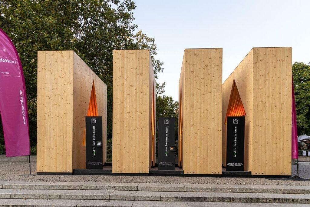 Дерево растет в лесу – дерево становится бревном – бревно становится домом. Простыми образными средствами «лесной пассаж» очерчивает превращение дерева в дом. Цель инсталляции, представленной proHolz Austria в Вене, – сделать это преобразование, являющееся фундаментом строительства из деревесины понятным каждому и связанные с этим экологические преимущества.