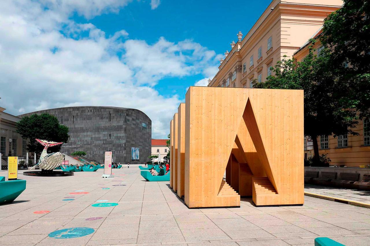 «Woodpassage» – это совместная инициатива proHolz Austria, proHolz Bavaria и Lignum Switzerland. Инсталляционные туры проходят по европейским городам и после остановок в Мюнхене, Линце, Аугсбурге, Инсбруке и Базеле теперь конструкцию можно увидеть в Вене.
