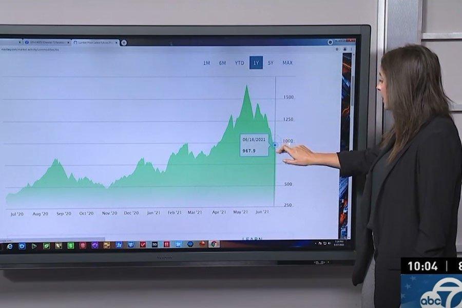 Цена на пиломатериалы в июне 2020 года составляла менее 400 долларов за тысячу доско-футов. Пика она достигла в мае 2021 года и составила 1670 долларов. По состоянию на 16 июня 2021 года он составлял 967 долларов.