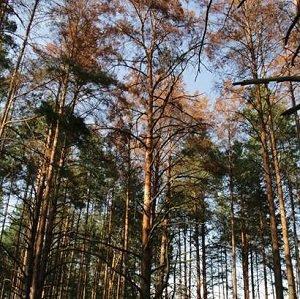 В останні роки причиною всихання соснових насаджень природної зони Полісся (в т. ч. лісів Житомирщини) являється широке розповсюдження осередків стовбурових шкідників, що призвело до поширення судинного мікозу. Про гостроту цієї проблеми вказує те, що тільки санітарними рубаннями суцільними за даними ДСЛП «Вінницялісозахист» пройдено в період з 2012-2014 рр. близько 1000 га лише з цієї причини.