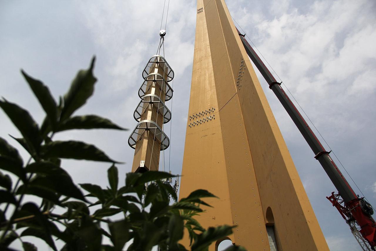 40-метровая башня была возведена прошлым летом рядом с местным заповедником, чтобы заменить более раннюю башню, построенную из стали.