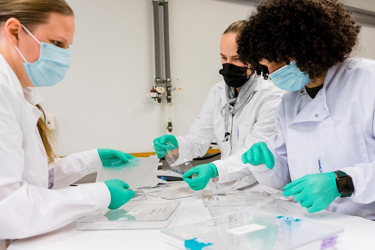 Профессор Кати Миеттунен, доцент Яана Вапаавуори и докторант Язан аль Хадж изучают пленки из наноцеллюлозы. Фото: Микаэль Нюберг, Университет Аалто