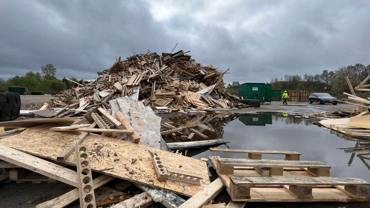 На приеме отходов в Ragn-Sells в Моссе много активности. Огромные контейнеры с древесными отходами выгружаются в гигантскую кучу, которую колесные погрузчики распределяют на несколько меньших куч.
