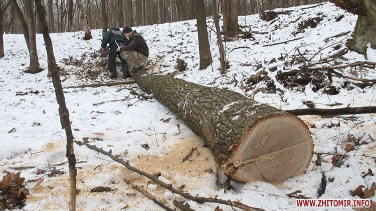 Зрізано дерева дуба у кількості більше 100 дерев, проведено заміри пеньків для встановлення шкоди, заподіяної деревам і лісу», – розповів інспектор Державної екологічної інспекції у Житомирській області Сергій Авраменко. Зловмисники орудували у лісі щонайменше місяць-півтора, переконаний інспектор.