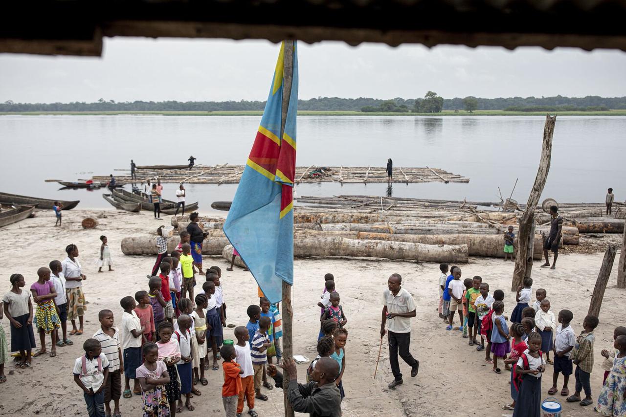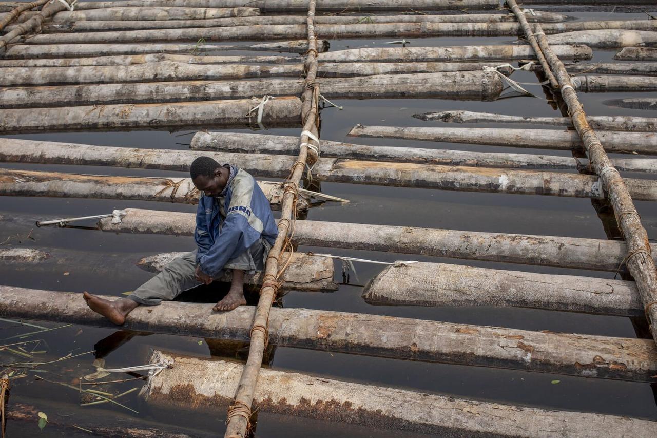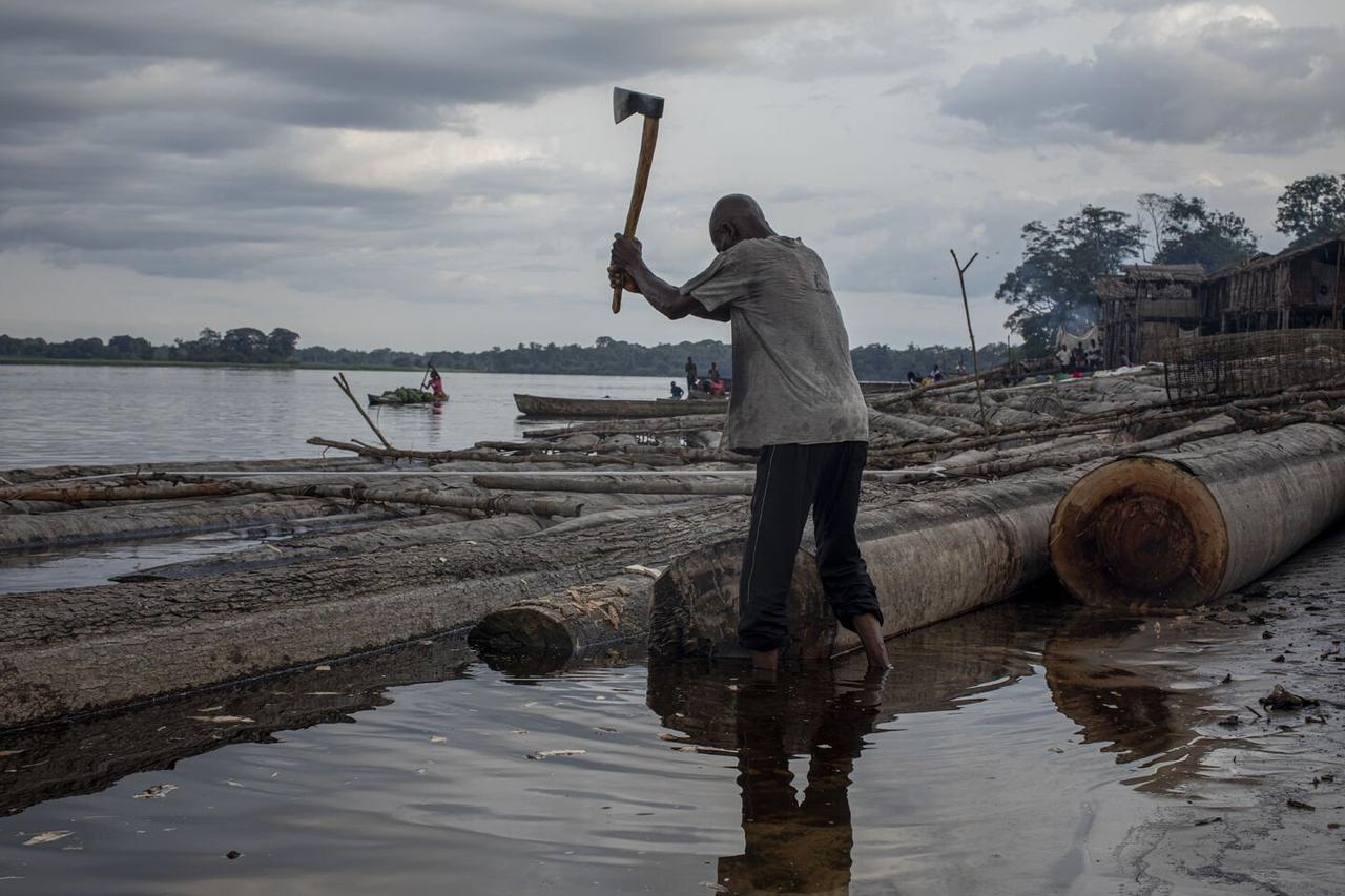 Мужчины обдирали прутья виноградной лозы, чтобы связать плот из десятков бревен, вырубленных в лесу на их заднем дворе. Их пункт назначения: раскинувшиеся прибрежные лесозаготовительные порты столицы, Киншасы, в сотнях миль вниз по реке.