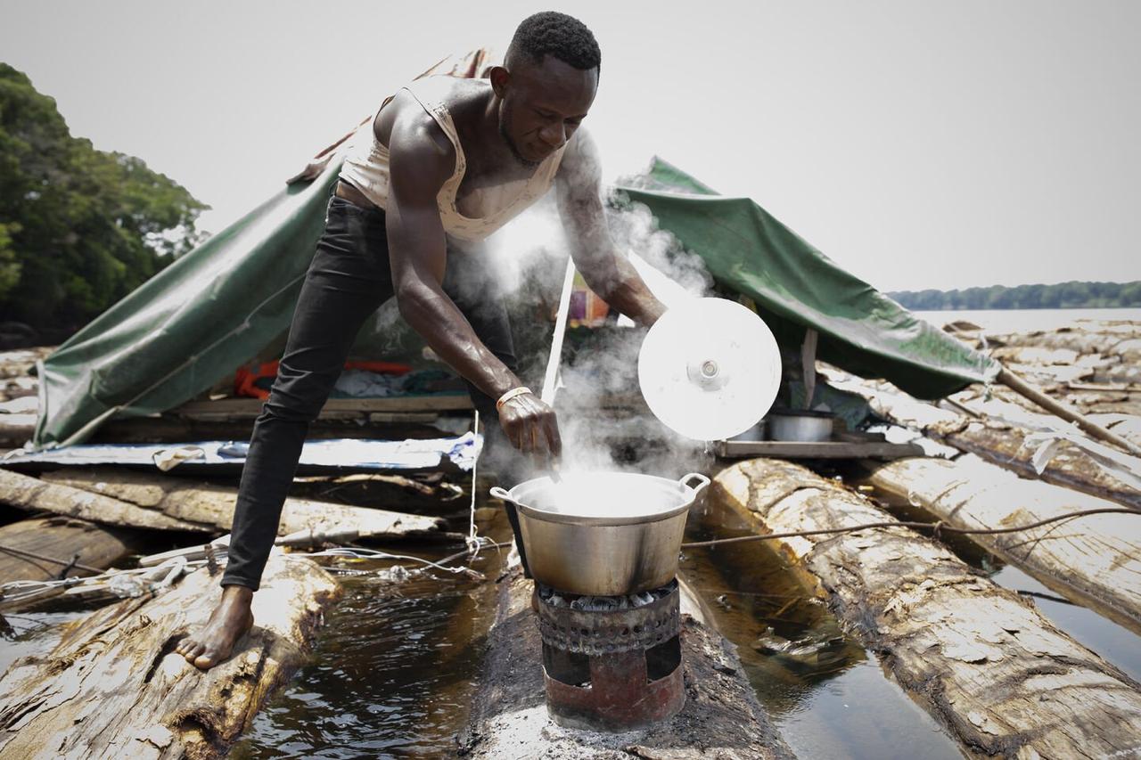 На борту одного плота Милостивый Мутеба готовил для команды.