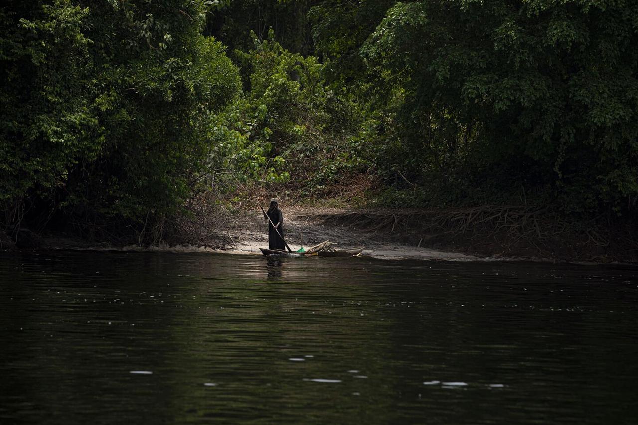 В этой беззаконной торговле река является артерией мира. В некоторых местах, где некогда возвышающиеся деревья готовятся к путешествию, сама вода окрашена в карамельный цвет от истекающего соком срубленных деревьев.