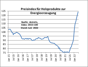 Более низкая доступность и резкое повышение цен на продукты на основе ископаемого топлива приводят к оживлению спроса на все виды энергетической древесины. Цены на газ, электроэнергию и печное топливо, вероятно, останутся очень высокими, поэтому спрос на энергетическую древесину и дрова должен продолжать расти.