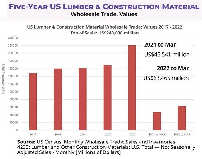 Невозможно переоценить важность строительства нового жилья в США, особенно на одну семью, для лесопильных заводов: 65 % канадских продаж пиломатериалов хвойных пород приходится на США, в основном на новое жилищное строительство, 10 % продается в Канаде и 6 % уходит в Японию.