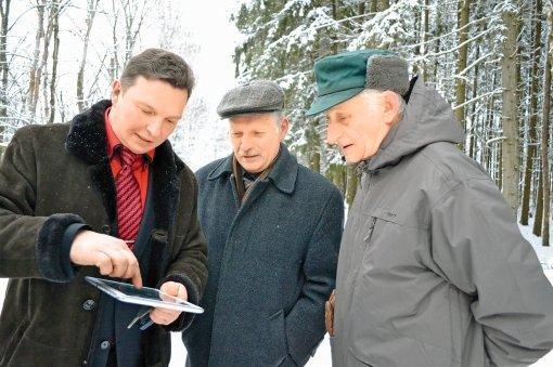Замдиректора ГКУ «Мособллес» объясняет пенсионеру, как лесопатологи используют в работе планшетные компьютеры /" В Украине было много таких лесных специалитстов, как Бондарев, но не могу сказать куда он делись? М.П./