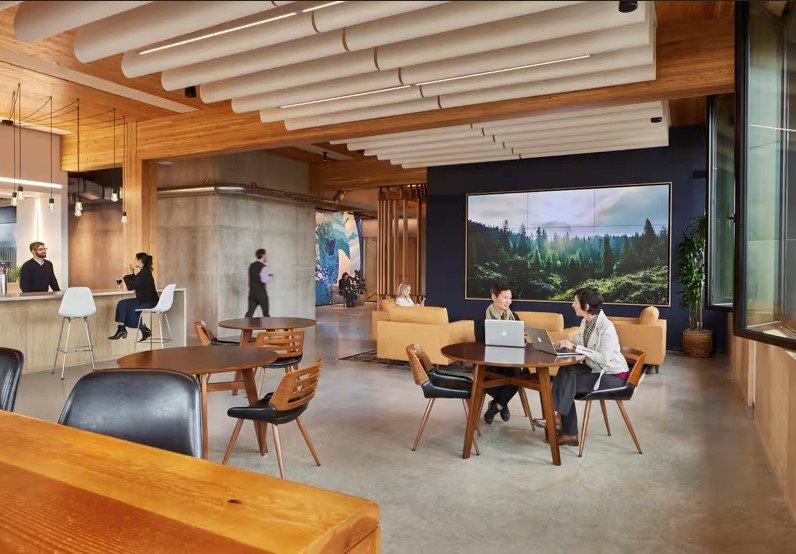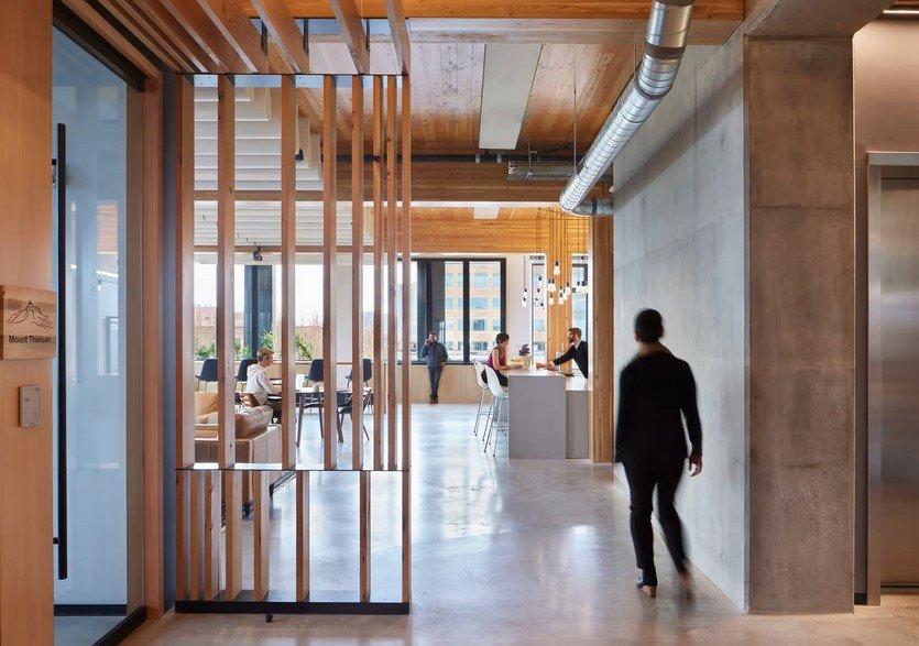 Здание площадью 58 000 кв. футов (почти 5 400 кв. м) занимает пять этажей. На первом этаже расположены торговые площади и фитнес-центр, а верхние этажи отданы под офисы. Также есть лаунж-зона под открытым небом. Как это обычно бывает с этими современными деревянными зданиями, внутренний декор во всем опирается на естественную красоту дерева и оставляет поверхности в значительной степени открытыми.