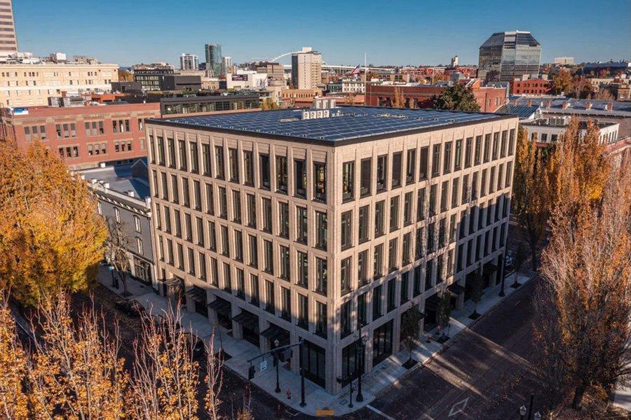 Живое здание PAE от ZGF Architects, спроектированное таким образом, чтобы выдерживать сильные землетрясения и прослужить до 500 лет, является впечатляющим примером жизнеутверждающего устойчивого дизайна. Офисное здание было построено в основном из дерева и минимизирует использование энергии из сети как пассивно, так и с использованием технологии солнечных батарей.