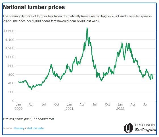 За последние два года лесопромышленные компании штата Орегон пережили дикий скачок: во время пандемии цены на пиломатериалы выросли в пять раз, а затем вернулись к чему-то близкому к нормальному.