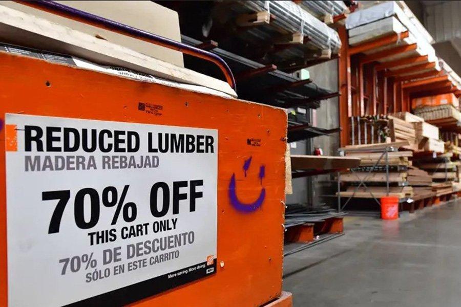 Партия досок со скидкой видна, когда люди покупают пиломатериалы в магазине Home Depot в Альгамбре, Калифорния, 4 мая 2022 года. ФРЕДЕРИК ДЖ. БРАУН / AFP через Getty Images