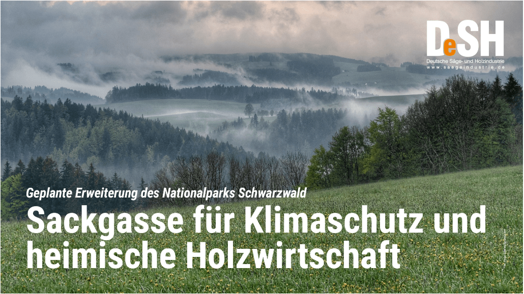 В совместном документе с изложением позиции Немецкая ассоциация производителей сборных деревянных конструкций (DHV), Holzbau Baden eV и Немецкая ассоциация лесопильной и деревообрабатывающей промышленности (DeSH) высказываются против запланированного расширения национального парка Шварцвальд. Альянс критикует проект, который подрывает реализацию наступления на деревянное строительство в Баден-Вюртемберге. Полное обозначение территорий, на которых выращивание запрещено, не дает никакой дополнительной пользы для защиты климата, но ставит под угрозу инновационную и эффективную лесную промышленность Баден-Вюртемберга.