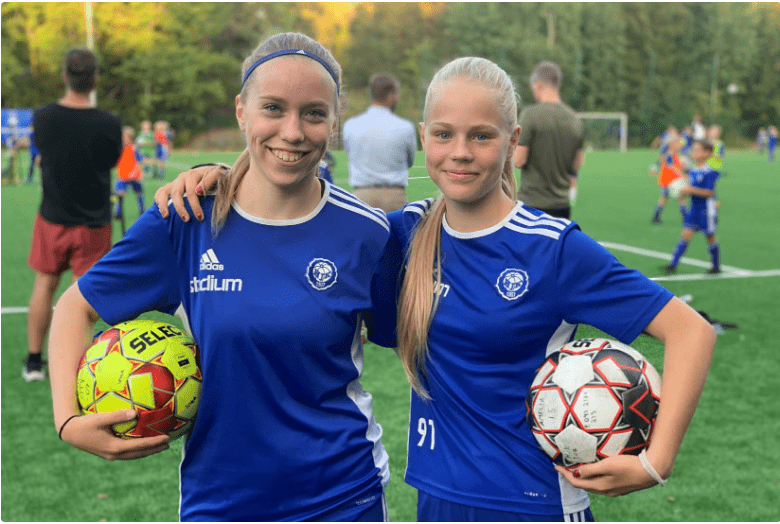 Перед дневной тренировкой 15- летняя Инга Видбом и 14- летняя Елена Наава из юношеской команды HJK сказали, что довольны новым деревянным полем.