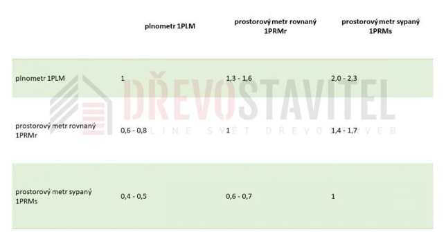 Взгляните на таблицу сравнения соответствия объемов дров в разных единицах измерения.