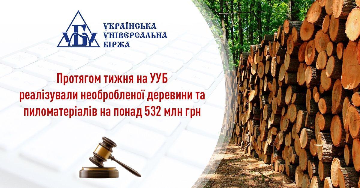 Що стосується пиломатеріалів, то у зазначений період на УУБ було реалізовано 9,537 тис. куб м ресурсу на загальну вартість 47,045 млн грн. Відбулось 35 торгів, укладено 77 угод. Зі 122 учасників 53 стали переможцями.