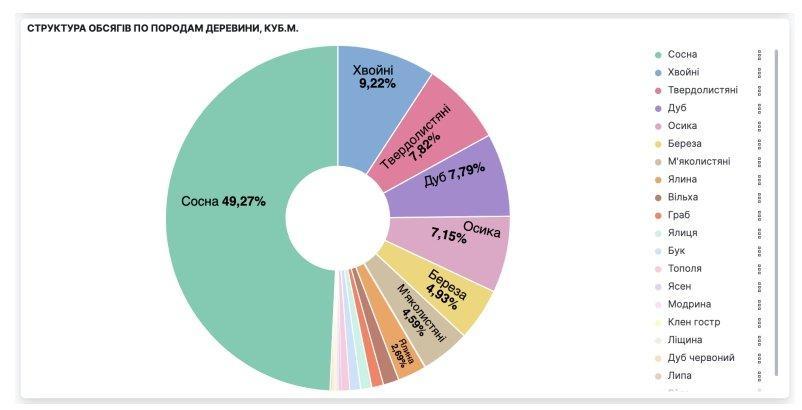 Найбільший попит мала сосна, інші хвойні та твердолистяні породи. Частка їх реалізації у загальній структурі склала 49,3%, 9,2% і 7,8% відповідно.