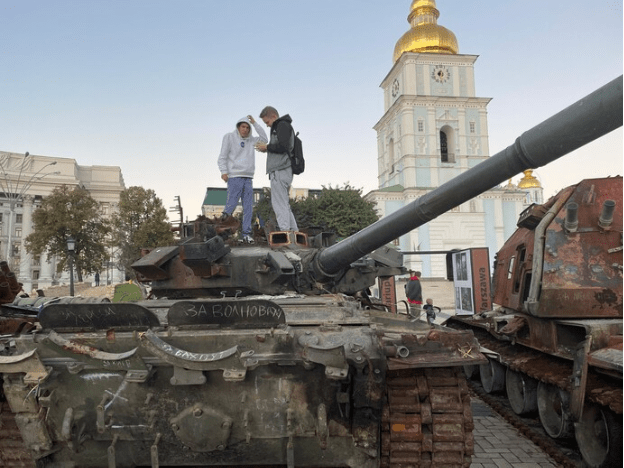 Украинцы, похоже, убеждены, что побеждают. Дети играют на трофейных российских танках на Михайловской площади на закате, в теплую осеннюю погоду, которую украинцы называют «бабьим летом». Дацюк, телепродюсер, допускает: «Придется когда-нибудь поговорить с русскими. Но не сейчас.” В опросе, проведенном Американской торговой палатой здесь, которых вряд ли можно отнести к группе активистов, 92 процента сказали, что Украина выиграет войну, по словам американца, который общался с палатой.