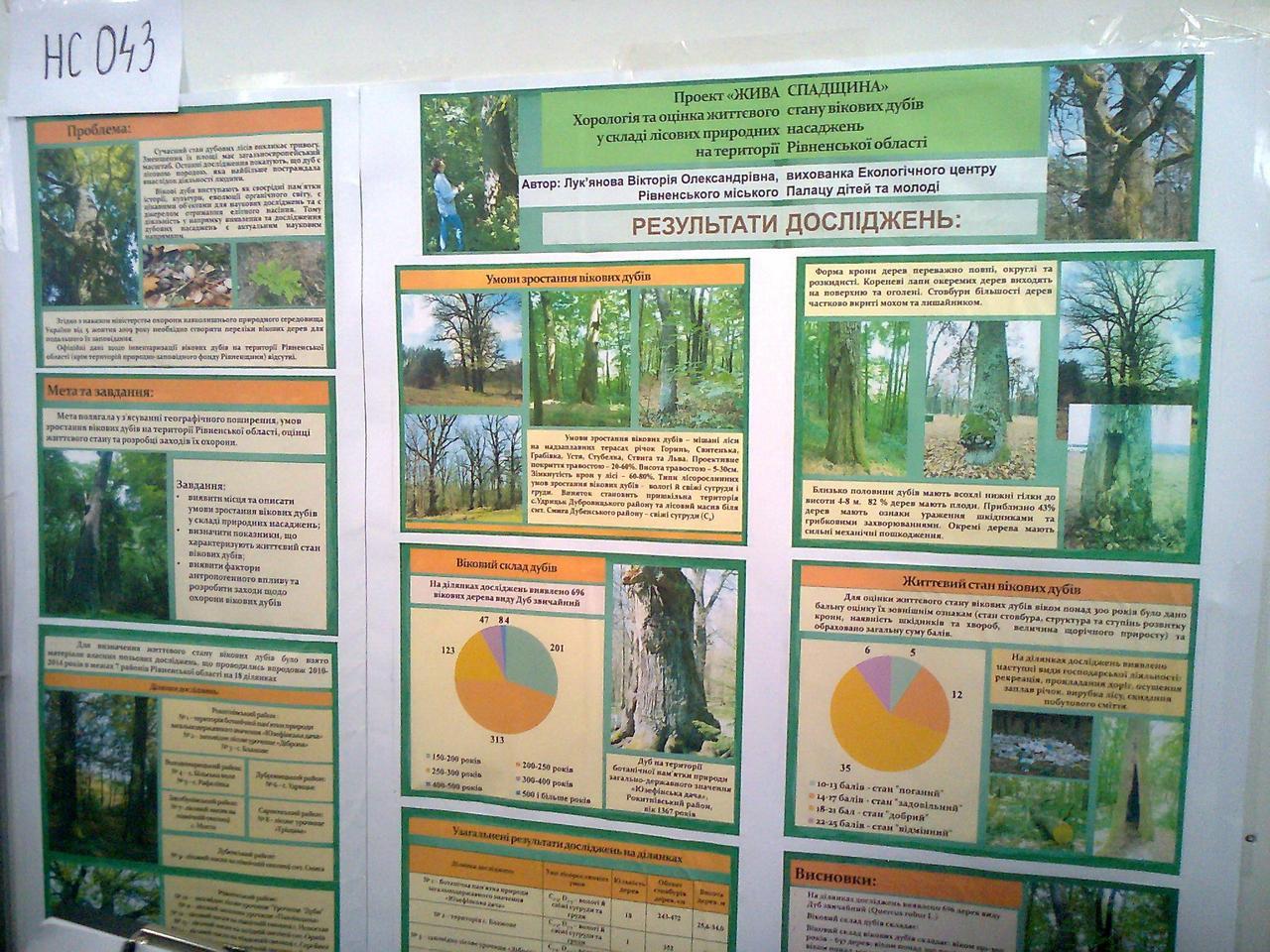 Вікторія Лук’янова 11 клас школа № 13, вихованка Екологічного центру рівненського міського палацу дітей та молоді.Тема проекту«Хорологія та оцінка життєвого стану вікових дубів (Quercusrobur L.) у складі лісових природних насаджень на території Рівненської області».