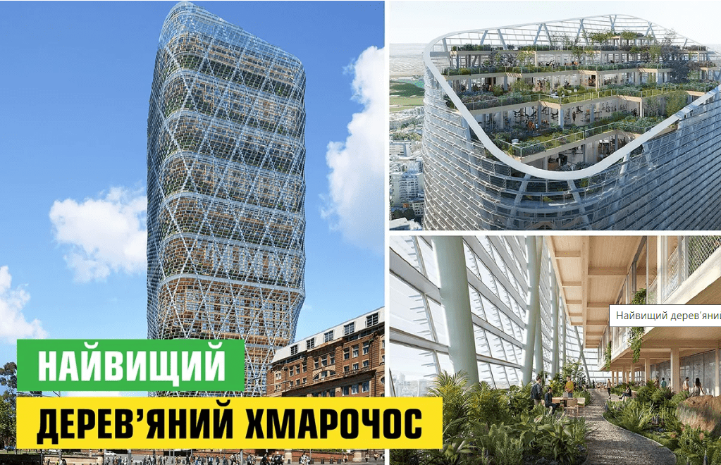 У світі продовжується тенденція на використання екологічного дерева у побудові сучасних висотних будівель. Так, нещодавно японські та австралійські будівельні компанії кооперувалися для зведення найвищої у світі дерев’яної вежі з гібридного дерева з використанням екологічно чистої деревини. Вони розпочали роботу над 182-метровим хмарочосом у центрі одного з найбільших австралійських міст – Сіднея.