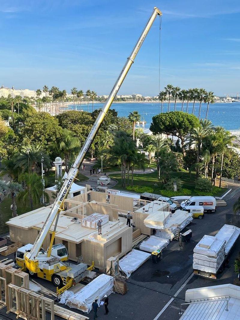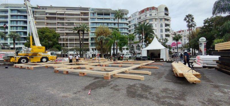 С 17 по 20 октября уникальная деревянная конструкция из чешских панелей NOVATOP стояла во французском городе Канны, прямо под ступенями знаменитого Дворца фестивалей, являющегося главной площадкой знаменитого Международного кинофестиваля. Banijay, компания, которая создает и распространяет контент для телевизионных и мультимедийных платформ по всему миру, выбрала этот материал для своей выставки на фестивале MIPCOM. Экологически безопасное здание по проекту Ромена Ларю из студии ORATI и архитектора Николи Спинетты компании-исполнителю удалось построить за четыре дня.