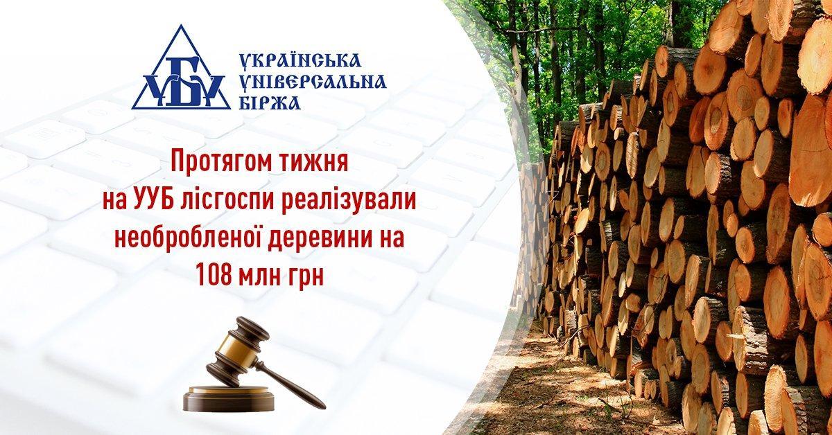 На Українській універсальній біржі лісові господарства з різних областей продовжують успішно реалізовувати необроблену деревину. Так, у період з 17 по 21 жовтня, було продано 32,46 тис. куб. м ресурсу на 108,2 млн грн. При цьому, завдяки крокам аукціону, держава отримала додатковий дохід на 7,8 млн грн більше відносно виставленої на торги початкової вартості необробленої деревини.