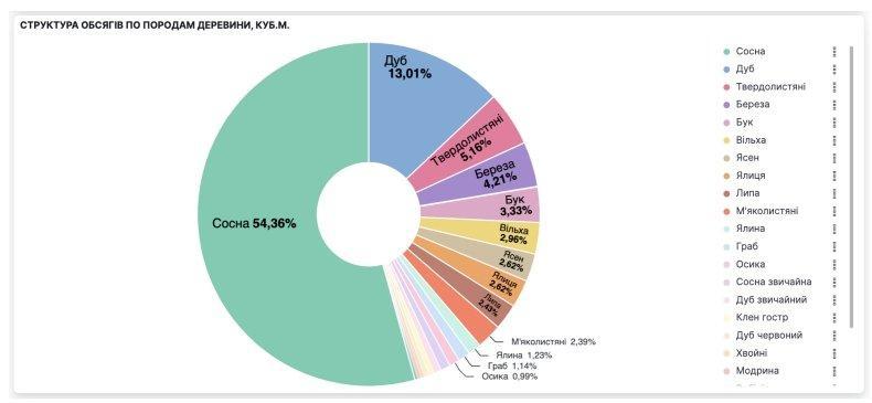 Як повідомив директор ТОВ «УУБ» Сергій Гладкий, найбільший попит мали сосна, дуб, та твердолистяні породи де частка їх реалізації у загальній структурі склала 54,4%, 13% і 5,2% відповідно.
