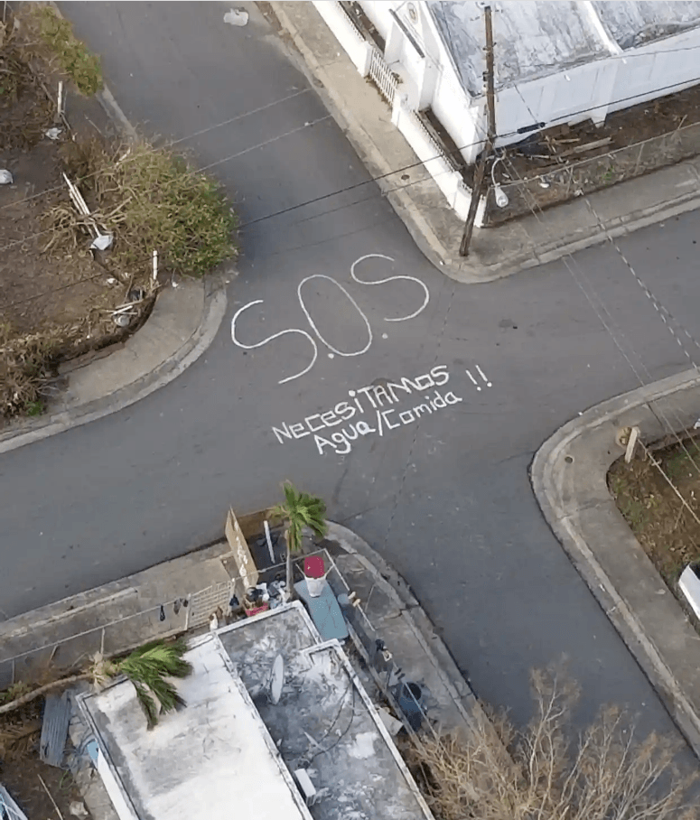 Знак SOS в Пуэрто-Рико во время урагана Мария, сентябрь 2017 г., Анджелина Руис-Ламбидес.