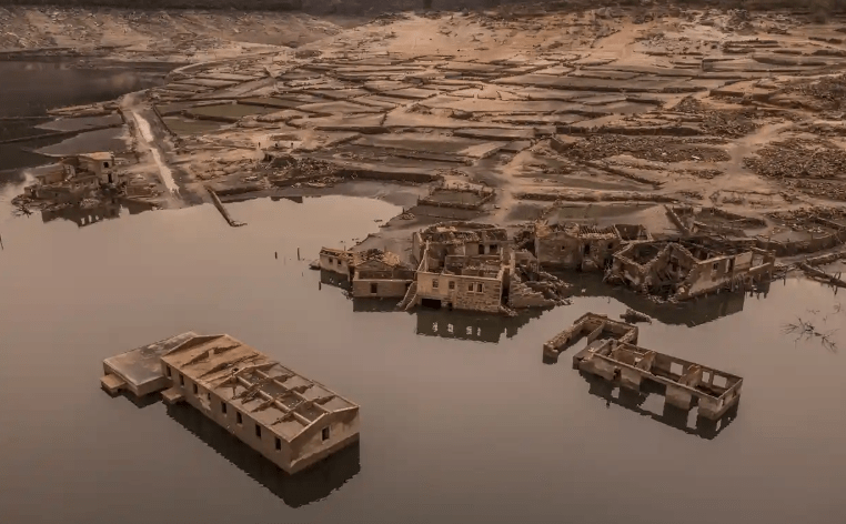 Рекордная засуха этого года привела к обнаружению ряда давно погребенных объектов по всему миру, в том числе круга мегалитических камней, получивших название «Испанский Стоунхендж», линкоров времен Второй мировой войны и затонувших кораблей XIX века. На этой фотографии показана жуткая сцена деревни-призрака, возникшей во время засухи в регионе Галисия в Испании. Небольшой поселок Асередо, в котором раньше проживало около 120 человек, был затоплен в 1992 году, чтобы создать водохранилище. Три десятилетия спустя в почти пустом резервуаре обнаружилось удивительно нетронутое место. Среди домов и улиц посетители заметили удивительные детали, такие как питьевой фонтанчик, все еще бьющий водой, штабелированные ящики с пустыми пивными бутылками и ржавый автомобиль.
