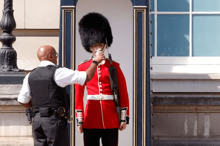 Становится все более очевидным, что Великобритания не приспособлена к жаре и не приспосабливается к ней должным образом — ситуация, идеально отраженная в этом образе охранника Букингемского дворца, одетого в традиционную красную тунику и шапку из медвежьей шкуры, которому нужно дать глоток воды. Несколько газет использовали его на своих первых полосах. «Это глупо и безответственно», — ответил один из пользователей Twitter, предложив перейти на форму, более подходящую для жары.