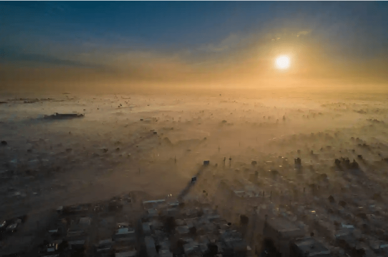 Это Мехикали, город к югу от границы США и Мексики — один из самых загрязненных городов Северной Америки — сфотографирован в первый день 2018 года. Загрязнение воздуха и изменение климата тесно связаны: и то, и другое в значительной степени обусловлено сжиганием ископаемого топлива. , в то время как жаркая погода способствует образованию смога.