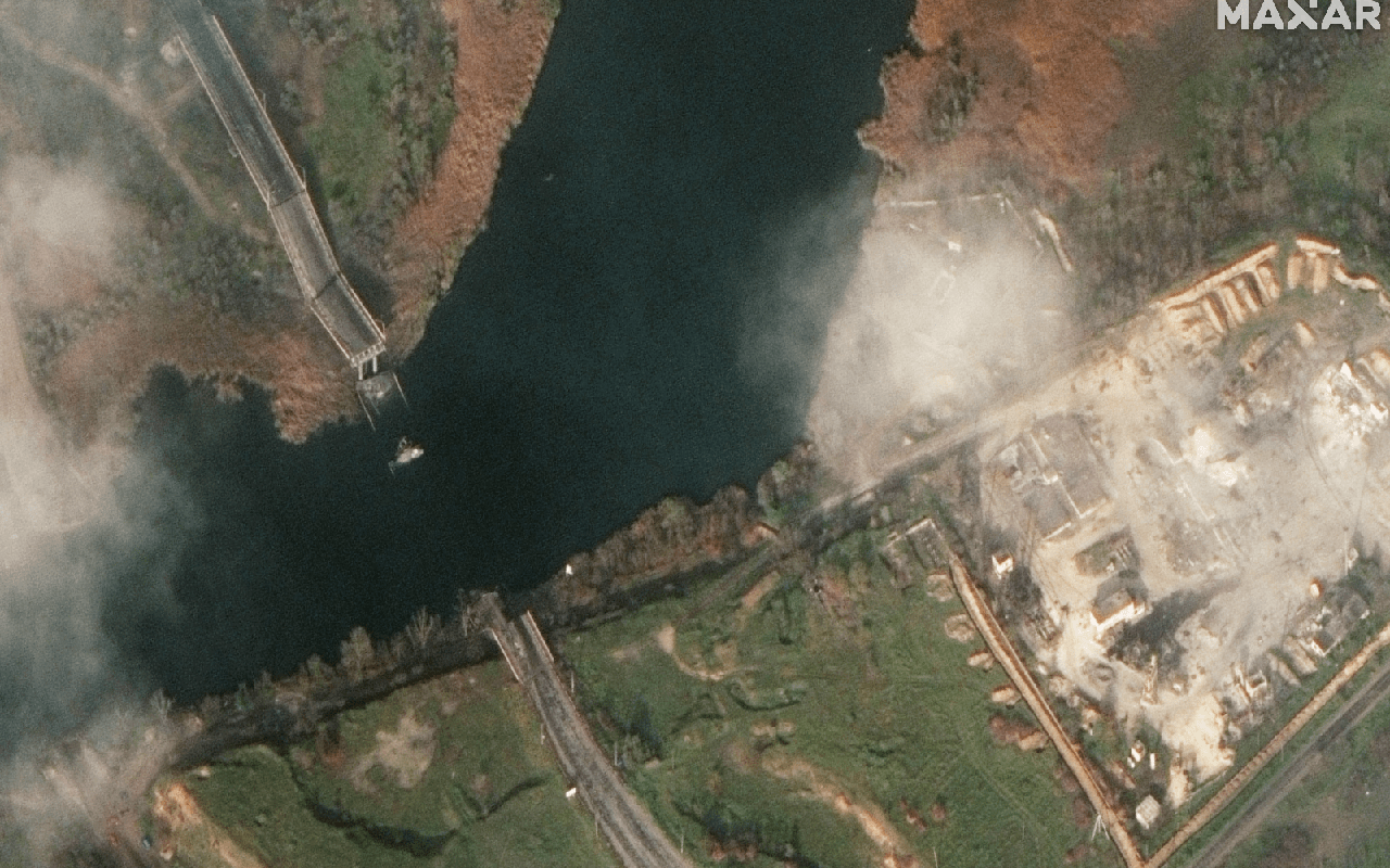 Вид поврежденного Даровского моста 11 ноября. Источник: Спутниковый снимок ©2022 Maxar Technologies