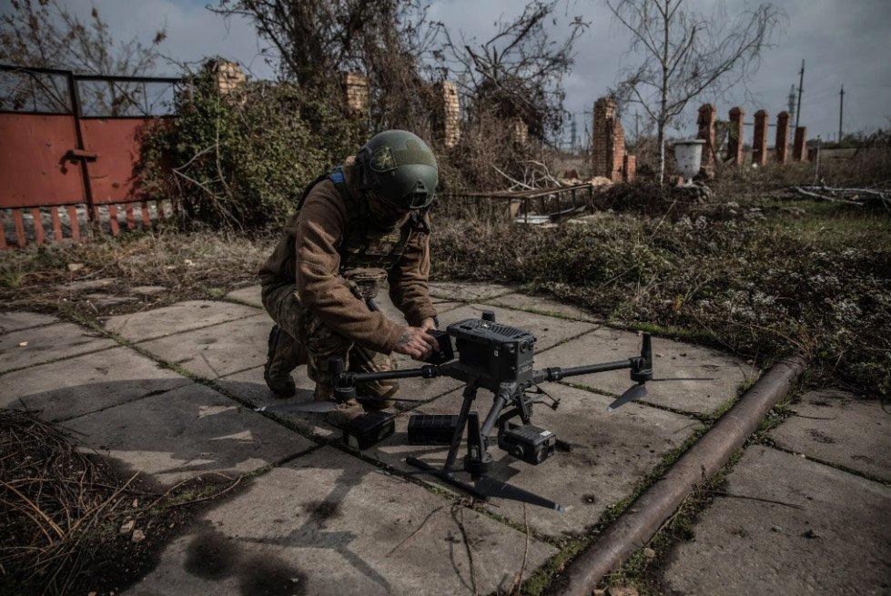 Украинский оператор беспилотника меняет батареи во время разведки российских позиций для корректировки артиллерийского огня во время боя на линии фронта возле оккупированного Россией города Донецка в октябре. Фото…Финбарр О’Рейли для The New York Times