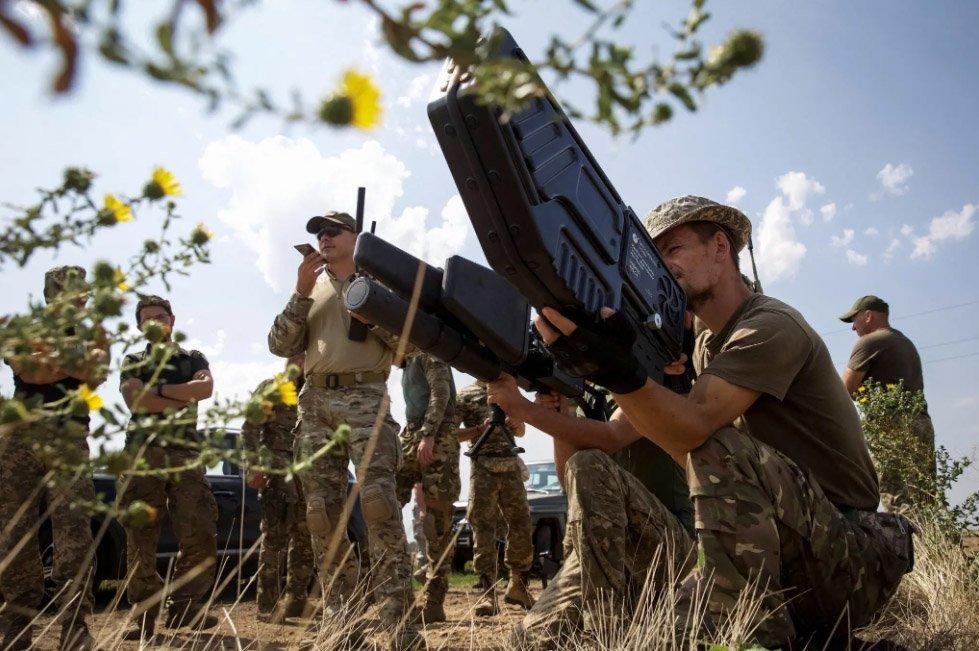 Украинский военнослужащий держат в руках антидроновую установку во время учений в Николаевской области в августе. Фото…Анна Кудрявцева/Reuters