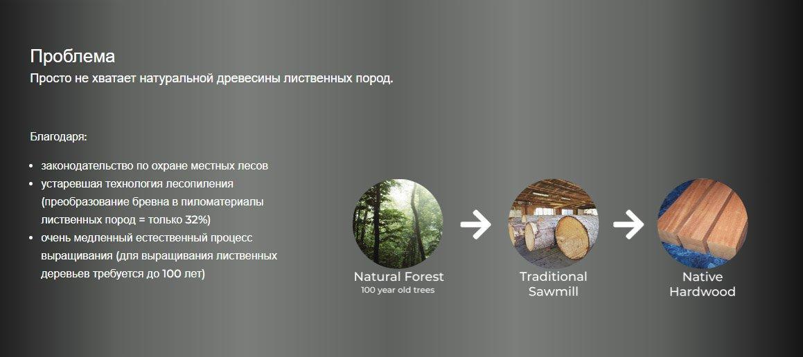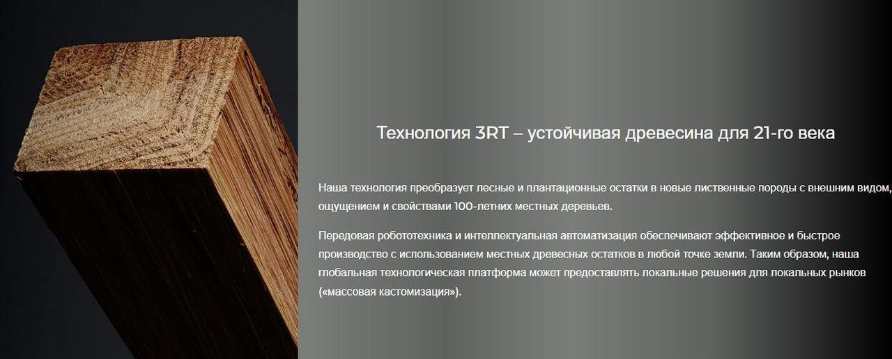 Веддите лесозаготовительную технологическую компанию 3RT, которая стремится заменить старовозрастную древесину лиственных пород быстрорастущей плантационной древесиной лиственных пород, которая может быть произведена из очищенного шпона, такого как фанера.
