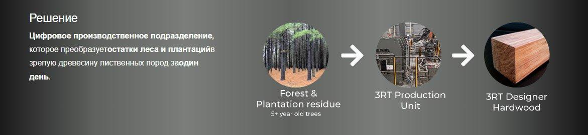 3RT создала цифровое производственное подразделение, которое превращает плантации и лесные остатки в блоки, которые работают как зрелая древесина лиственных пород в течение одного дня.