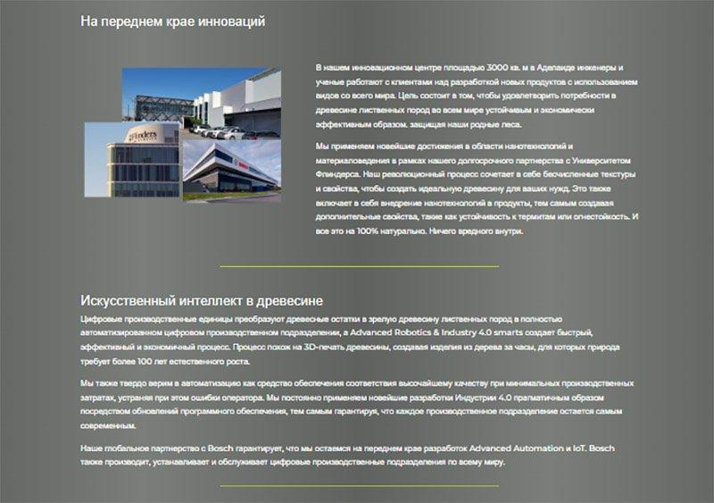 «Мы также начали [экспериментировать] с шпоном хвойных пород, но это первые шаги», – сказал он.
