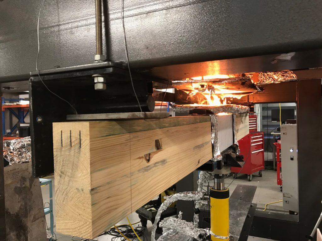 «Поскольку FRP встроен в ламинированную древесину в процессе производства, деревянный чехол будет защищать FRP во время пожара, который обычно считается чувствительным (если его оставить незащищенным) к повышенным температурам пожара».